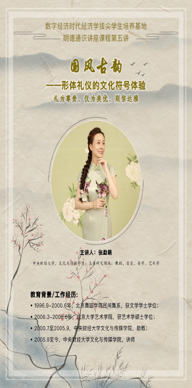 2022年5月25日,基地邀请到了365best文化与传媒学院的张勐萌老师做“国风古韵·文化自信-形体礼仪的文化符号体验”主题讲座。