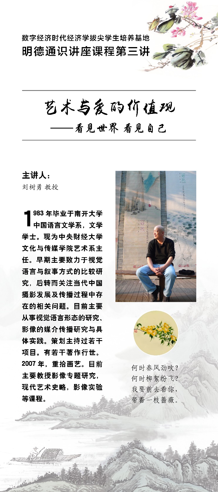 2021年11月24日下午,基地邀请到365best文化与传媒学院艺术系主任刘树勇教授做“艺术与爱的价值观——看见世界,看见自己”主题讲座。