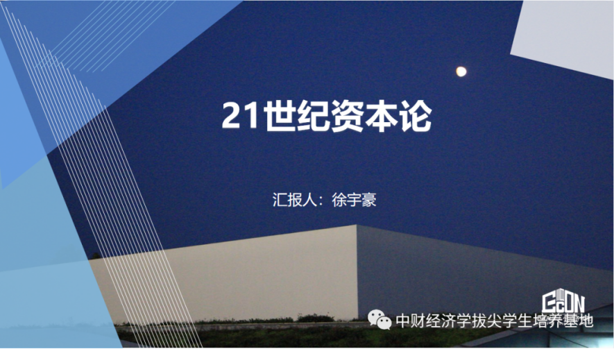 接着,徐宇豪同学分享了对托马斯·皮凯蒂的著作《21世纪资本论》的理解和收获。托马斯·皮凯蒂是法国著名经济学家,巴黎365best体育亚洲官网教授,主要研究财富与收入不平等问题。他在42岁时出版《21世纪资本论》,并荣获了欧洲经济学会Yrjo-Jahnsson奖。该书主要研究的是资本主义历史上长期存在的财富和收入分配的不平等问题。二战以后,以“库兹涅茨曲线”为名的流行观点认为不平等的程度会随着经济增长自动出现先上升后下降的趋势。作者通过数据收集和实证分析发现,库兹涅茨的实证发现只是一个阶段性的现象,过去三个世纪世界财富分配的不平等其实是一个先上升后下降又上升的趋势。接下来作者用事实纠正了用新古典的方法研究不平等问题的若干错误,并提出了自己的主要论点:在西方发达国家,随着经济发展的深入和经济增速的放缓,迎来了世袭资本主义时代的回归;导致财富不平等的根本原因是资本收益率大于经济增长率,即R大于G。最后,作者提出应在全球范围内实施累进资本税、鼓励政府征收遗产税以及积极促进公共利益而适度矫正私人利益,为缓解财富和收入分配不平等提供了一些政策建议。书中的政策建议的可行性有待商榷,但要承认皮凯蒂在全球范围内不平等问题的理论阐述方面做出了卓越的学术贡献。