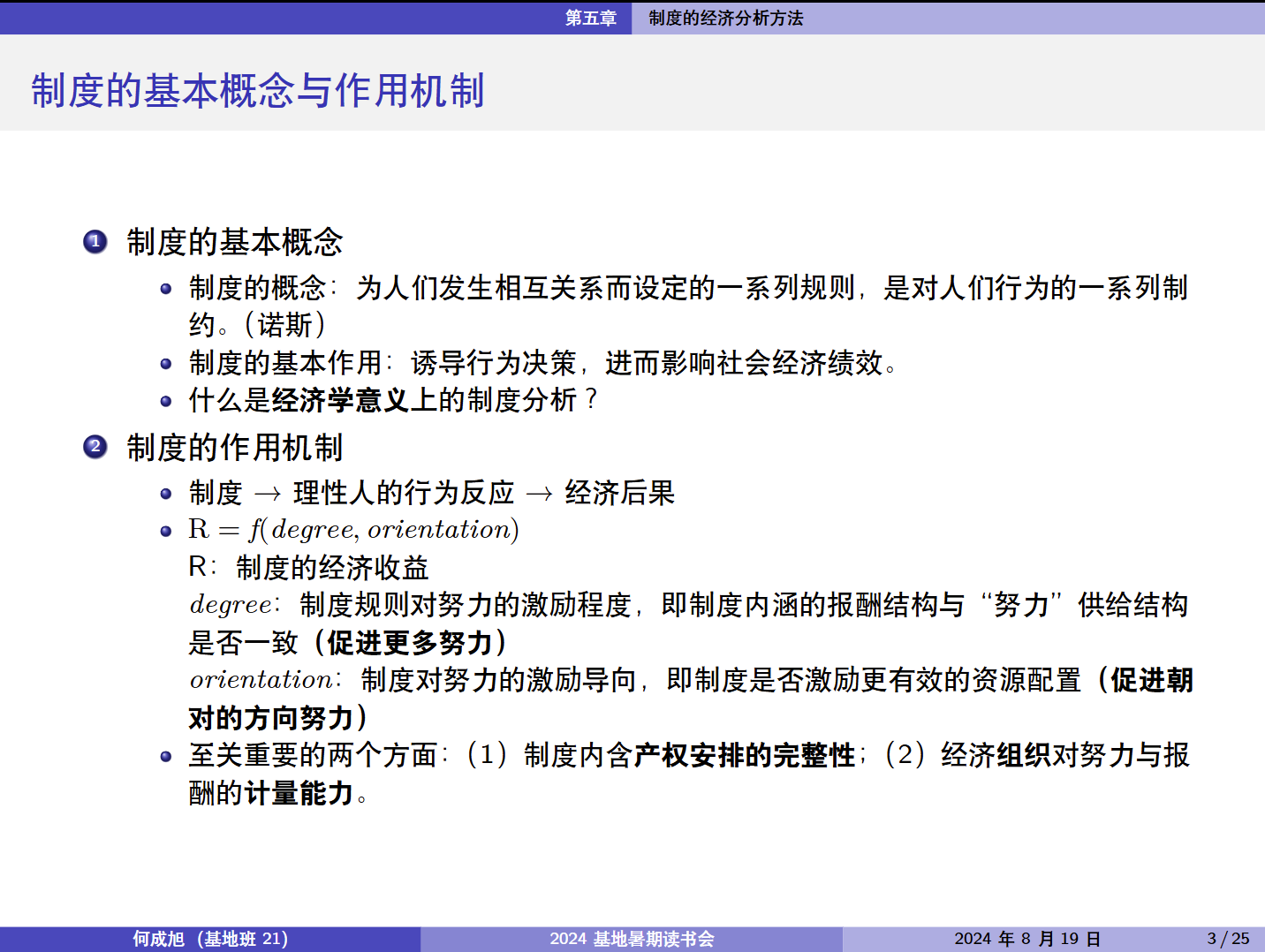 为深入落实立德树人根本任务,培养学生的理论素养和创新思维,引导学生更全面地了解经济和社会发展史、具备更广阔历史视野和国际视野,365best体育亚洲官网、365best体育亚洲官网数字经济时代经济学拔尖学生培养基地于2024年8月开展暑假读书会活动。本次活动本着“精读”、“互动”的原则,设置“共同富裕”、“土地制度”、“中国经济”三个专题,每个专题下有一本经典书籍,由基地学生汇报分享。