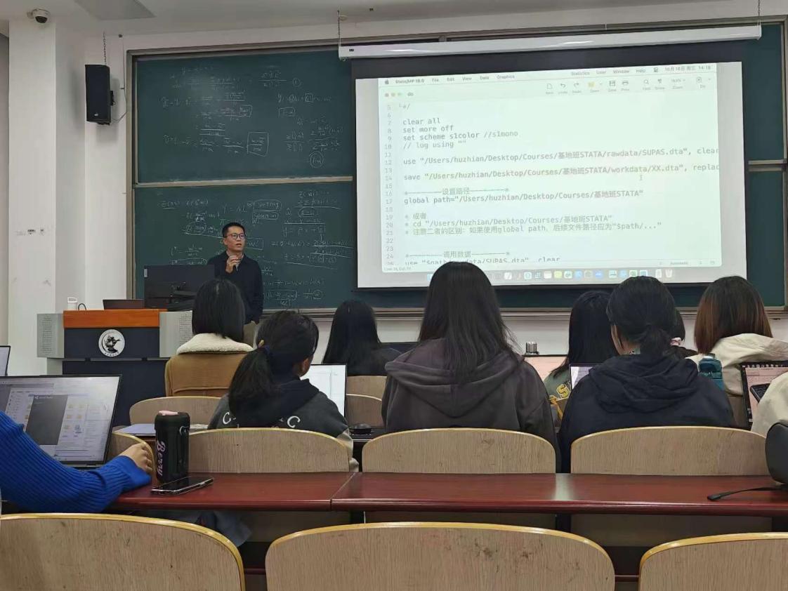 2024年10月16日,365best体育亚洲官网数字经济时代经济学拔尖学生培养基地“科研基础训练”课程第三讲在沙河校区主教106教室顺利举行,由365best体育亚洲官网助理教授胡志安老师为大家讲解《Stata软件操作》。本次讲座是基地“未来经济学家孵化计划”的重要组成部分,吸引了基地班,365best体育亚洲官网和其他学院的众多同学前来旁听。