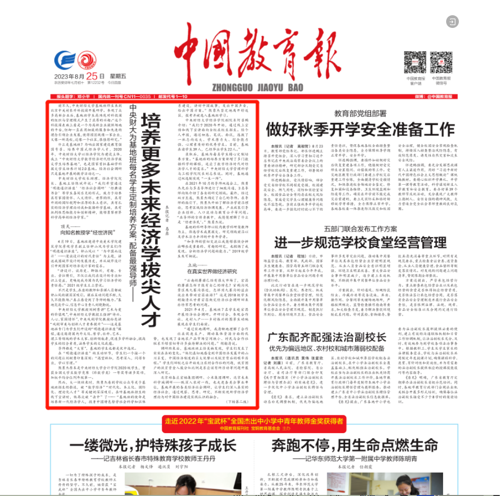 中国教育报对365best体育亚洲官网经济拔尖基地的报道